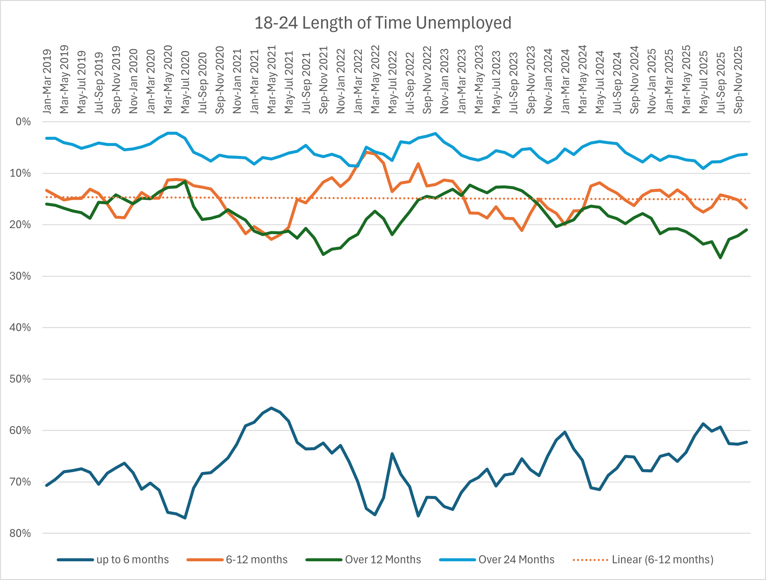 This does not mean youth unemployment is unimportant, but it does caution against short-term policy overreaction. What matters is whether the long‑run trend for young people is worsening compared to the overall trend.